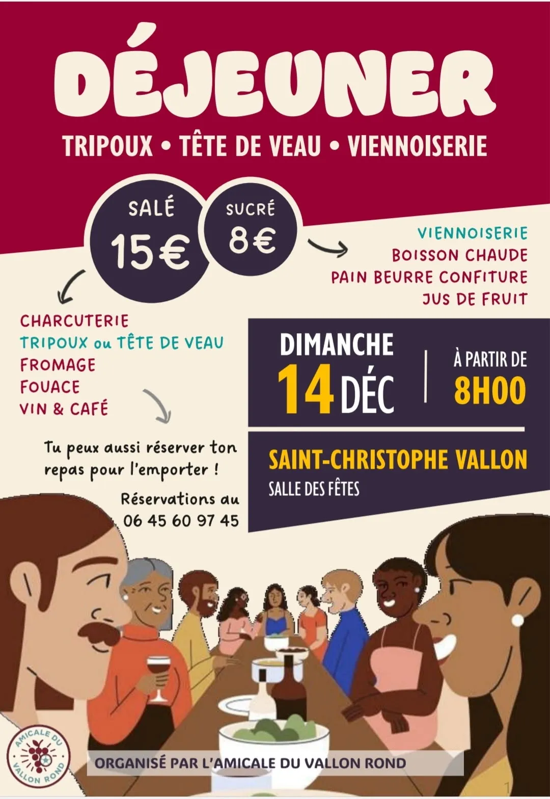 Possibilité de réserver le repas à emporter!