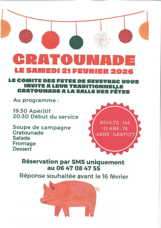 Gratounade le samedi 21 février à partir de 19h30, à la salle des fêtes de Pont-les-Bains.