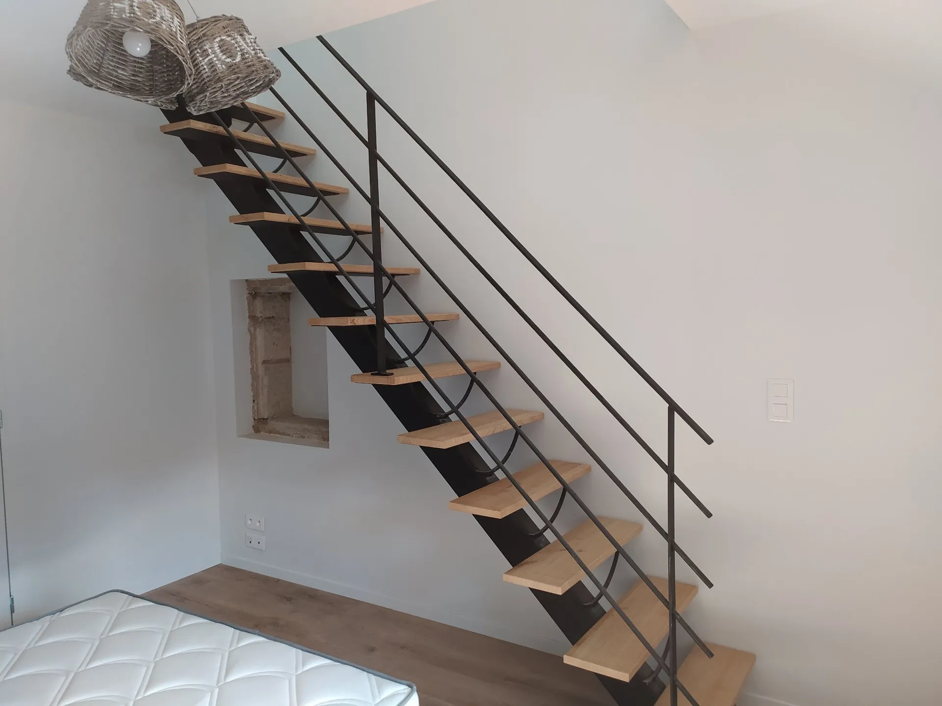 D’une chambre avec mezzanine, avec trois lits en 140cm, salle d’eau et wc privées.